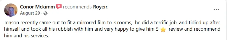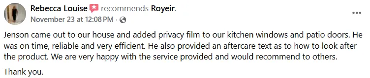 If your home or workplace feels too warm in summer, too bright during the day, or too exposed to the outside world, you’re not alone. Many properties across Northern Ireland struggle with harsh sunlight, glare, and a constant loss of privacy. Royeir offers a simple, cost-effective solution that transforms the comfort and efficiency of your space without replacing a single pane of glass.